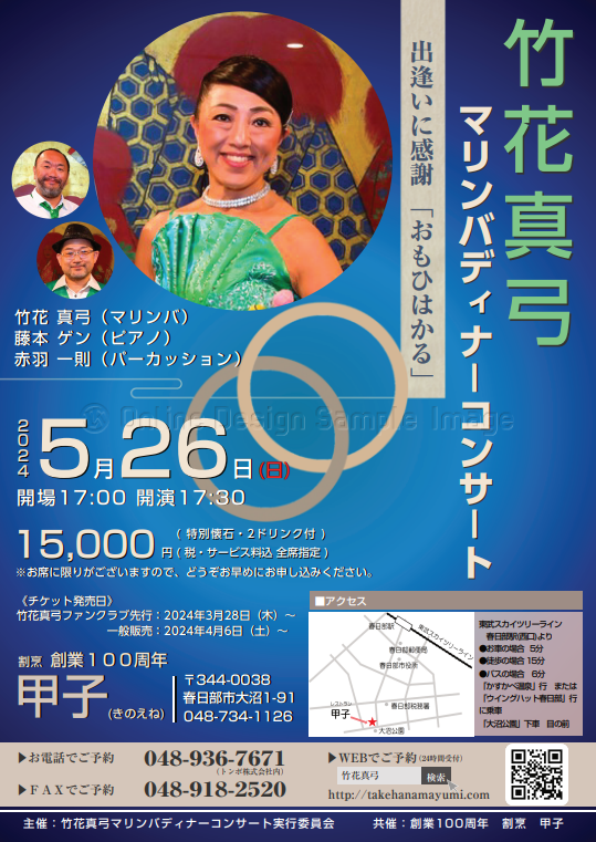 2023年11月24日(金)開催を予定しております『竹花真弓スペシャルディナーショー~マリンバの音色とともにご縁をつむぐプレシャスな銀座時間~』はおかげさまでチケット完売いたしました。