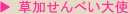 | 草加せんべいについて 今や全国に知られる和菓子の一大ブランド、草加せんべい。そのルーツについては諸説ありますが、 現在、市内にあるせんべいの製造所や販売所は70軒以上に及び、名実ともに草加市を代表する名物となっています。 |